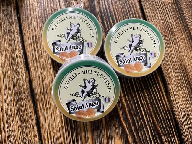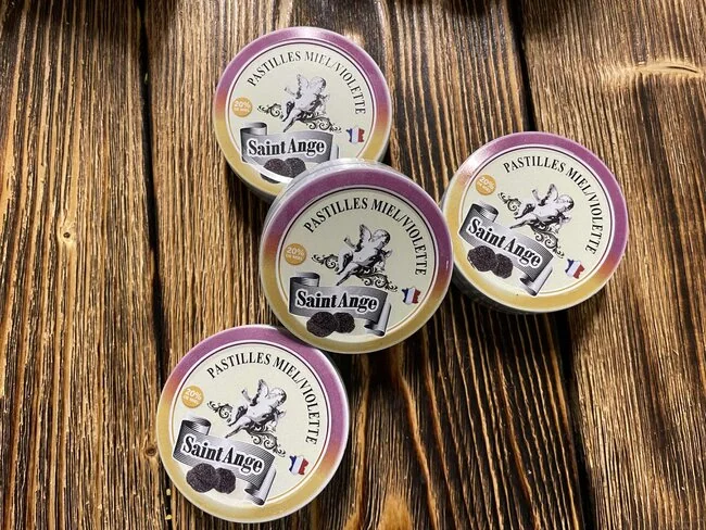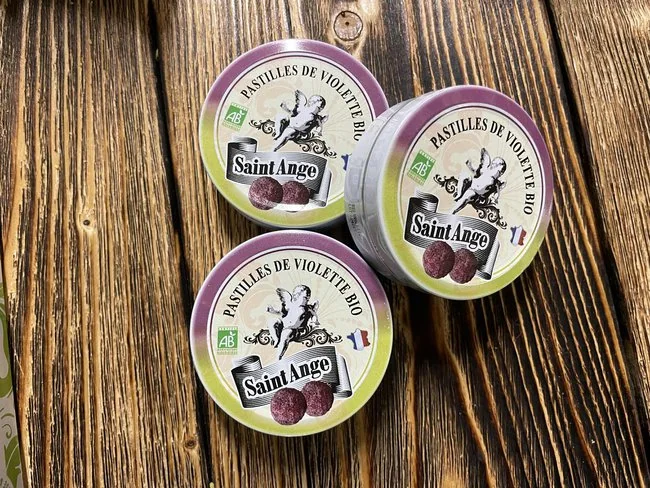 Bonbons saint ange är klassiska franska hårda karameller i vackra plåtburkar. Finns i flera smakvarianter – med honung, örter, frukt och blommor. Säljs per burk.