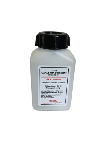 Oxalsyra 18,75 g är en färdigmängd för behandling av cirka 15 bisamhällen och används som ett kraftfullt medel mot varroakvalster. Produkten är avsedd för professionell biodling och blandas ut till en 3,2 % lösning inför behandling. Oxalsyran har visat god effekt vid användning under vinterhalvåret, särskilt när samhällena är yngelfria. Användning kräver noggrannhet och skyddsutrustning.