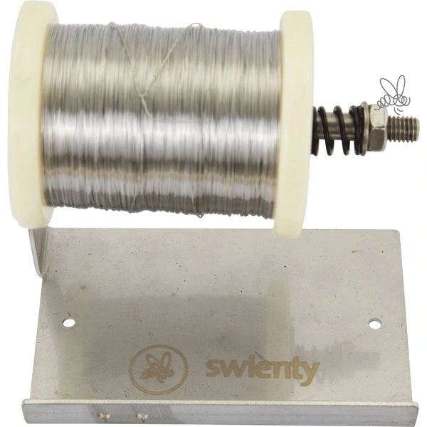 Denna trådavrullare är ett oumbärligt hjälpmedel för biodlare som trådar många ramar. Med förborrade hål kan den enkelt skruvas fast på ett bord, en platta eller vägg för stabil användning. Tack vare fjädermekanismen hålls rullen på plats och du slipper trassel eller att tråden rullar av sig själv. Passar rullar på både 250 g och 1 kg, vilket gör den flexibel för olika behov.