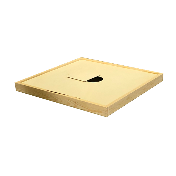 Denna foderplatta från LP:s är utformad för att placeras mellan sargen och taket på träkupan. Den fungerar både som isoleringslåda och som foderstation under sensommar och höst.