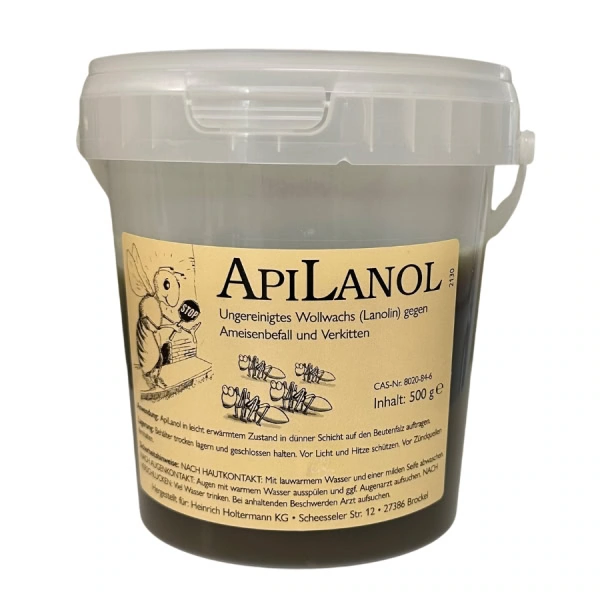 Ullfett ApiLanol är ett naturligt och oraffinerat lanolin framtaget för att förebygga myrangrepp och förhindra cementering av bikupor. Produkten appliceras på yttre vikytor och används aldrig inne i kupan. Den mjuka lanolinkonsistensen gör appliceringen enkel efter lätt uppvärmning. Helt fri från syntetiska tillsatser – perfekt för biodlare som vill använda naturliga skyddsmetoder.